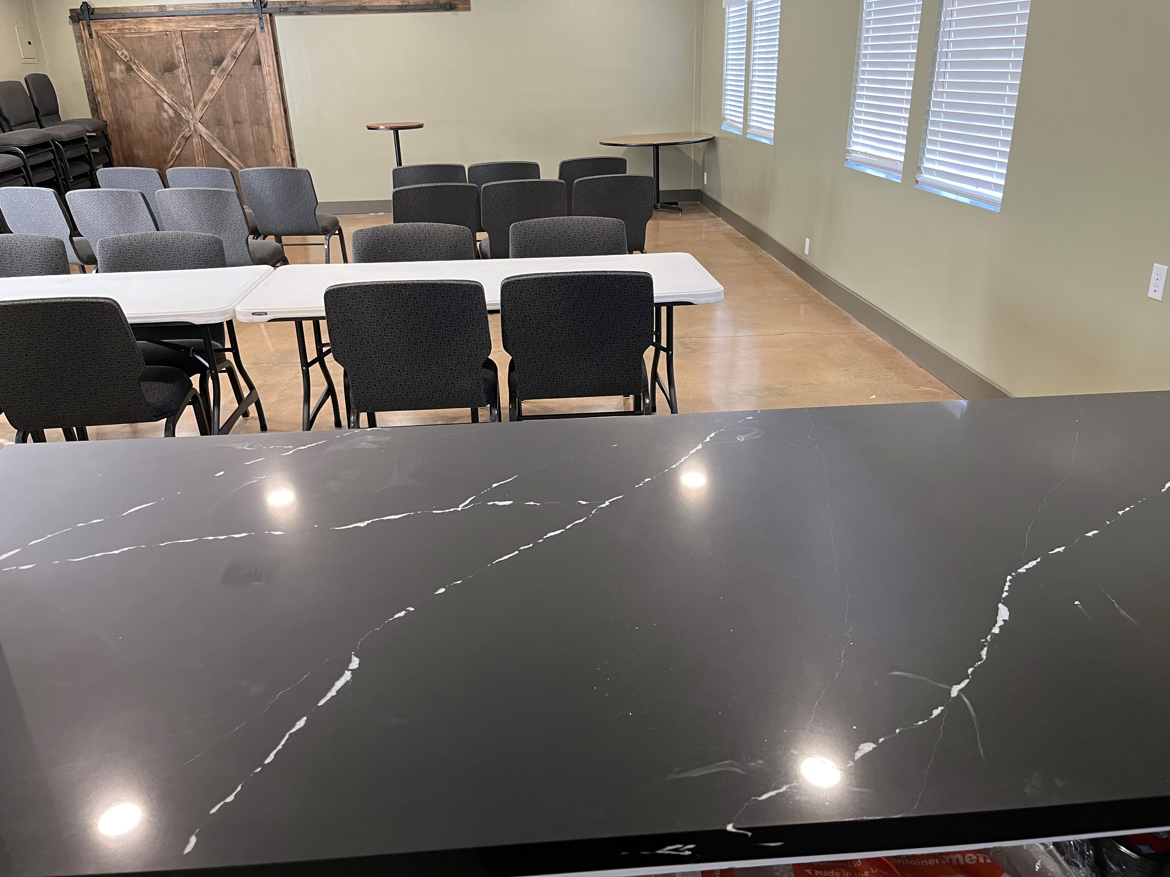 Last but not least, they replaced some of the electrical outlets and even replaced the countertop that connected the Dining Room and the Kitchen with a nice new black marble top!