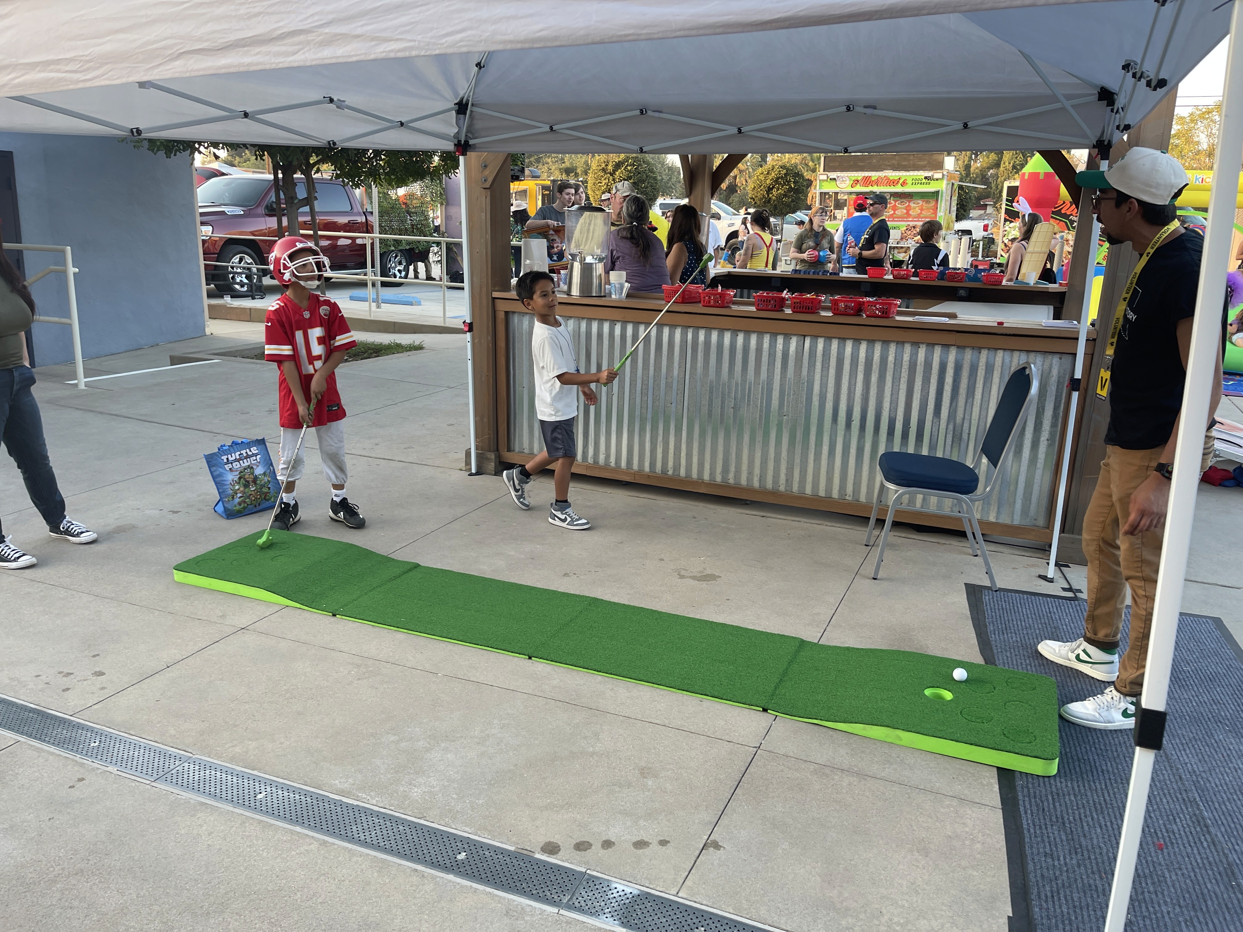 We had bounce houses for all ages, carnival-style games, a dunk tank, a photo booth area, 2 food trucks, 25 trunks giving out over 100 lbs of candy, we gave away 200 free pumpkins, and over 300 people attended!